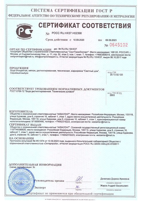 Не используйте дистиллированную воду для питья, она предназначена только для технических целей.