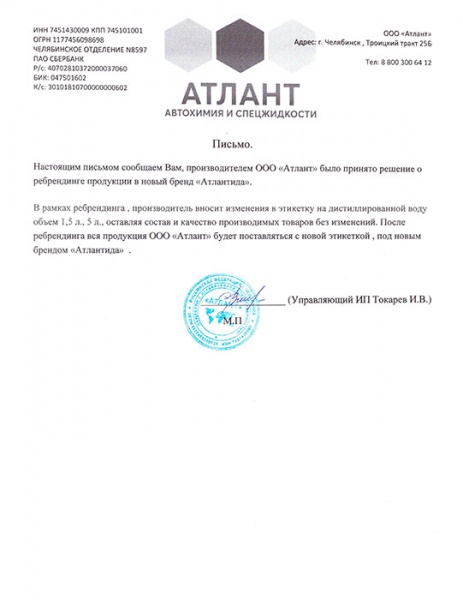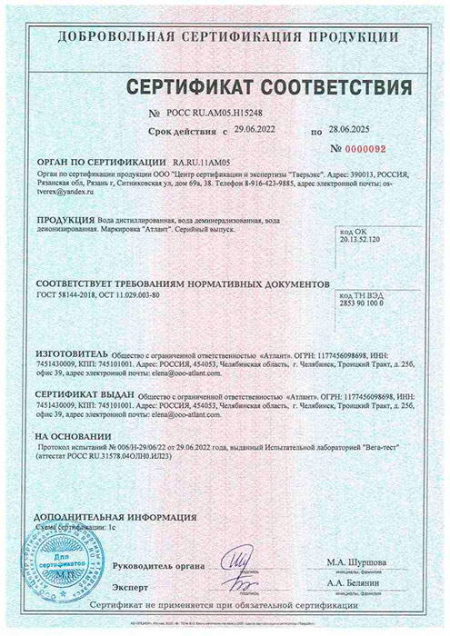 Состав: дистиллированная вода 100%