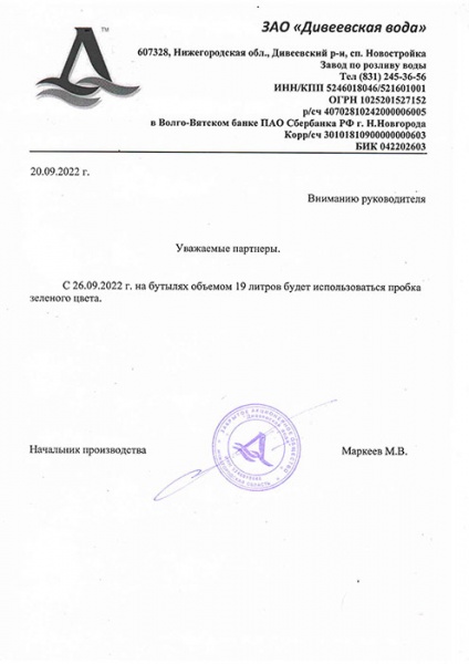 «Дивеевская» вода защищена от подделки: термоусадочным колпачком на бутыли и оригинальной наклейкой на пробке.