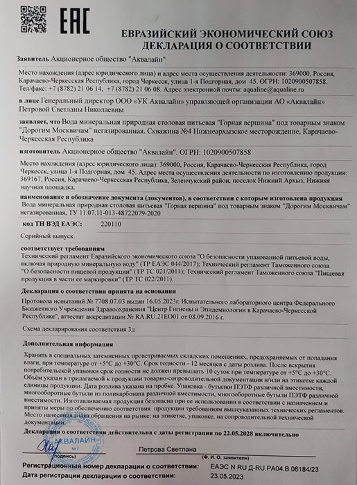 Эксперты Пятигорского ГНИИ Курортологии рекомендуют природную питьевую минеральную воду «Дорогим Москвичам» к ежедневному употреблению для всей семьи. Она отлично раскрывает вкус чая и кофе, улучшает вкус блюд.