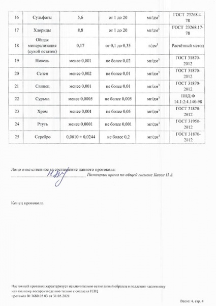 По результатам лабораторных исследований, питьевая столовая вода «Дорогим Москвичам» прошла проверку на соответствие требованиям качества и безопасности пищевой продукции. На производстве организован постоянный контроль качества: каждые полчаса вода тестируется сотрудниками лаборатории, аттестованной региональным центром Роспотребнадзора РФ.