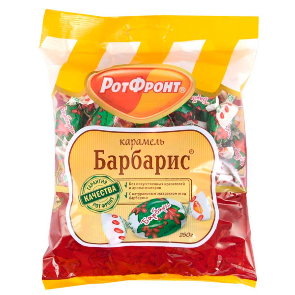 Главное лакомство путешественников – леденцы "Барбарис". Долгоиграющие карамельные конфетки яркого розового цвета. Кисло-сладкие, чуть прозрачные, с тонким ароматом ягод барбариса, эти конфетки скрасят любую долгую дорогу и отлично дополнят горячий чай из термоса. Подойдут и для сладкого перекуса в офисе, когда хочется взбодриться.