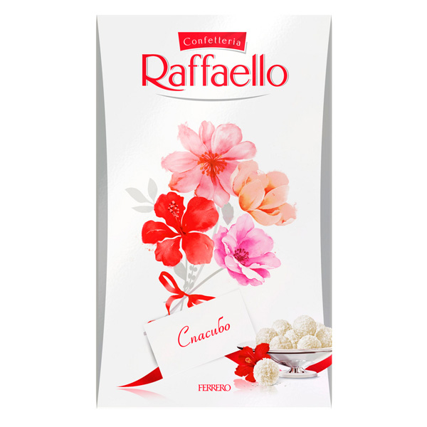 Конфеты Raffaello с цельным миндальным орехом в кокосовой обсыпке - знаменитое лакомство, созданное по оригинальному рецепту кондитеров Ferrero.