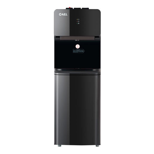 Напольный кулер с верхней загрузкой бутыли с компрессорным охлаждением полностью глянцевого черного цвета. Высота кулера 930мм позволяет комфортно нажимать на три клавиши, одна из которых для горячей воды - имеет защиту от случайного нажатия.