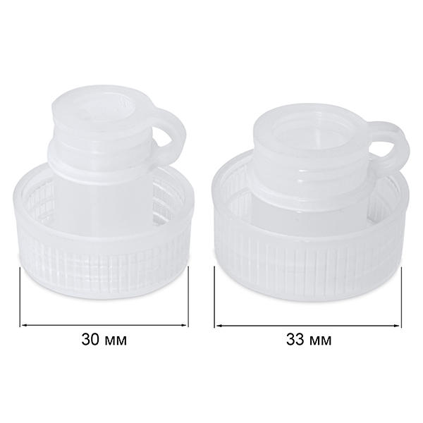 В комплекте две насадки диаметром 30 мм и 33 мм, позволяющие устанавливать бутылки разного типа с подходящим диаметром под насадки.
