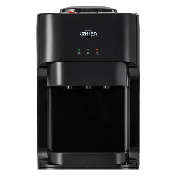 Напольный кулер для воды без шкафчика, без холодильника. Кулер для дома и офиса. Электронное охлаждение (0,6л/ч) + нагрев воды (6л/ч). Цвет черный. Три крана с кнопками. Подходит для домашнего и офисного использования, на предприятиях и учреждениях.