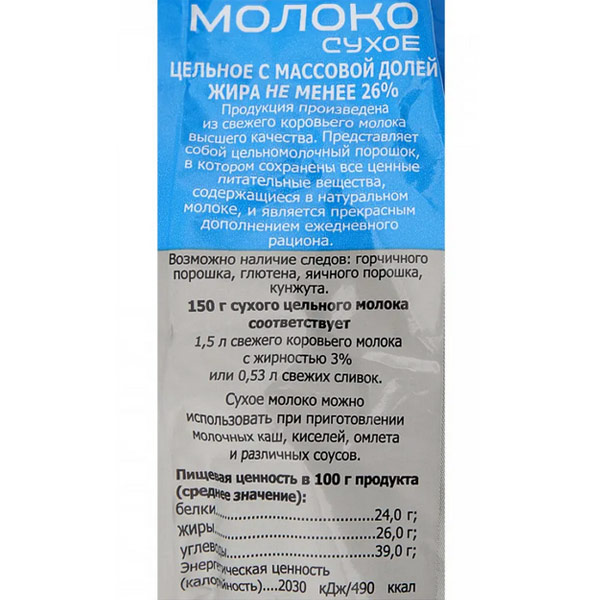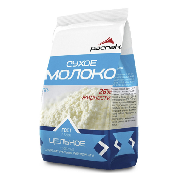 Сухое молоко от российской компании «Распак» — высококачественный продукт длительного хранения. Порошок изготавливается из натурального цельного молока. Он может применяться для приготовления каш, супов, соусов, десертов. Может использоваться в детском питании.