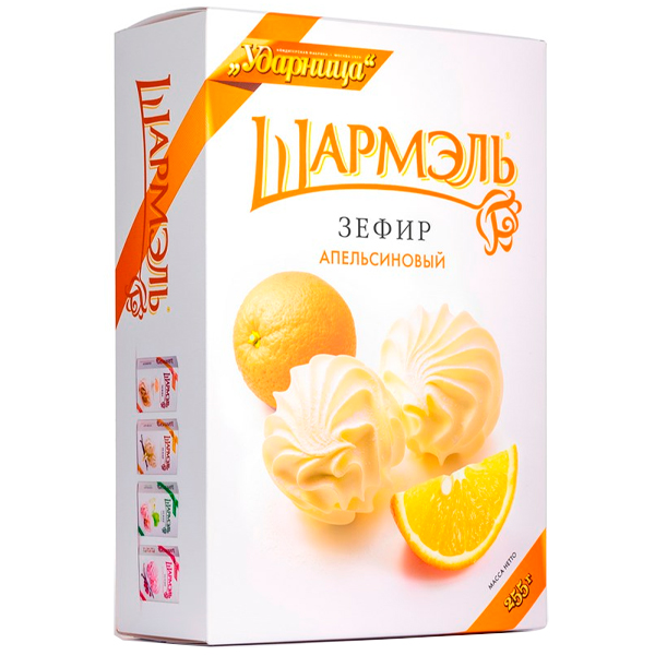 Приготовлен по традиционной рецептуре. В основе продукта натуральное яблочное пюре, агар - уникальное полезное вещество, которое получают из морских водорослей, яичный белок. Содержит натуральный краситель – куркумин. Аромат и вкус продукту придает натуральный экстракт апельсина.